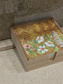 Set di 6 Sottobicchieri in Legno con Decorazioni Floreali e Scatola Abbinata đżâ¨