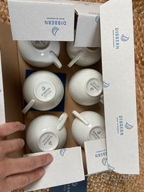 Set di 6 tazze (0,25 l) e 6 piatti coordinati, collezione Simplicity attualmente sul sito ufficiale dibbern ( 380€ ) made in Germany, fine bone china , dishwasher e microwafe safe.
