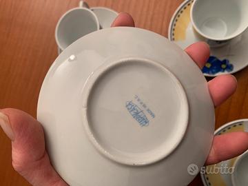 Set di tazzine da caffè con piattino Happy Casa con decoro floreale blu e dettagli gialli In ceramica Ottime condizioni