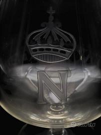 Set di 7 bicchieri da brandy napoleonico in cristallo Baccarat, Napoleone III primi decenni del ‘900. È un bicchiere tipo "snifter" o "balloon" con una coppa ampia che si restringe verso l'alto, caratterizzati da una base larga che si restringe verso l'alto ideale per concentrare gli aromi di distillati come il brandy o il cognac. Il cristallo è trasparente e presenta il monogramma "N" sormontato da una corona, un motivo che si riferisce a Napoleone Bonaparte. Questi oggetti sono spesso considerati da collezione o antiquariato Napoleone. Stato: Interrotto. Misura: altezza 13,5 x diametro 6,5 cm.