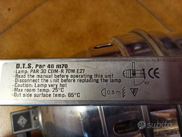 Vendo in blocco numero 7 luci a spot con griglia estraibile, attacco lampadina E27 , 70w. Con attacco di tipo industriale.Il prezzo si riferisce al set completo composto da 7 luci.