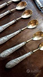 Elegante set antico di 8 posate (cucchiaini) placcate in argento 800.