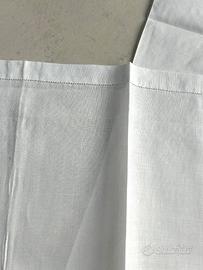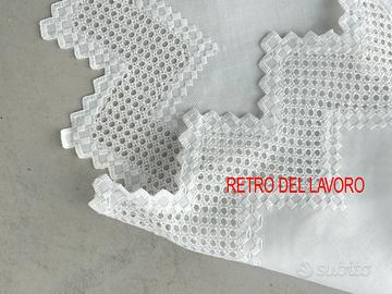 Vendo doppia coppia di asciugamani ricamati a disegno geometrico e orlo rifiniti a punto a giorno realizzato a mano. Tessuto di puro cotone colore bianco. Il set è compost da 2 asciugamani viso 100x70 centimetri e 2 asciugamani ospiti - bidet 50x35 centimetri. Nuovi, mai usati, vendo per inutilizzo.
