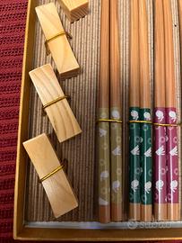 5 coppie di bacchette di legno con porta bacchette Comprati a Tokyo Ovviamente nuovo mai usato