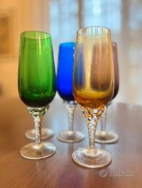 Set di bicchieri alti da brandy o vino vintage anni '60 Empoli di fine manifattura con stelo twistato trasparente, Pezzi unici perfettamente conservati