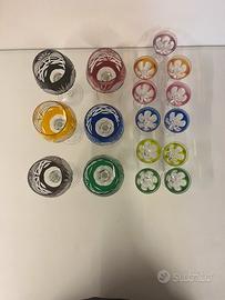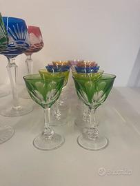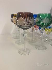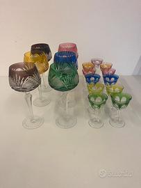 Set da 6 calici grande e 11 calici piccoli. Cristallo inciso e in colori diversi come si può vedere dalle foto!