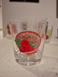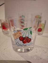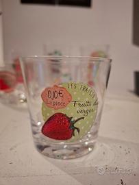 set di 11 bicchieri per frutta o macedonia in vetro con cucchiaino in porcellana.