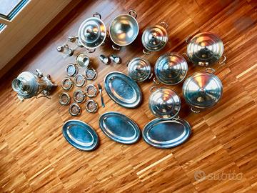 Vendo particolare set in Peltro. 5 Casseruole e 3 Zuppiere vintage epoca 1950 con coperchio prodotte in Tirolo, di varie dimensioni