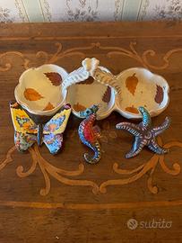 - 3 figure marine in ceramica di Albissola: una farfalla, un cavalluccio marino e una stella marina.
