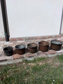 Set di cinque paioli antichi in rame