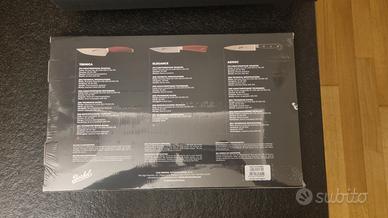 Vendo set di coltelli Berkel NUOVI ANCORA NELL'IMBALLO ORIGINALE, set Chef new 5 nero elegance. Venduti sul sito della berkel a 479 euro (come da ultima foto del carosello).