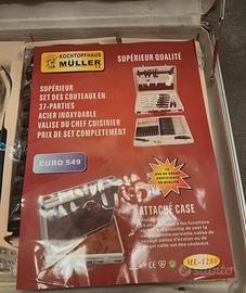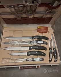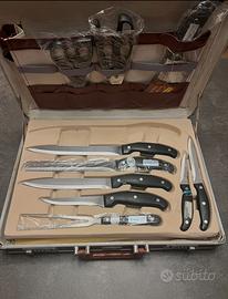Set elegante di coltelli professionali, ideale per cucina domestica o uso più esperto. I coltelli sono ben organizzati in una pratica valigetta rigida.