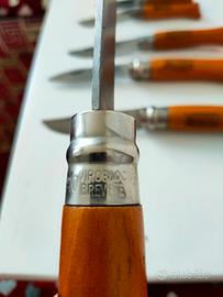 Set di coltelli originali 1er choix Opinel La Main Couronnée, made in France 🇫🇷, composto da 2 pezzi N°10, 3 pezzi N°8, 10 pezzi N°7, 2 pezzi N°6, 2 pezzi N°5 e 1 pezzo N°4, tutti nuovi e di prima scelta, ideali per collezionisti, rivendita o uso quotidiano grazie alla qualità e affidabilità del marchio francese.