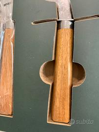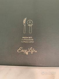 Set per tagliare la pizza, rotella e coltello. Nuovissimi, ancora nella loro confezione originale. Questa é fatta a forma di libro, può essere molto carino per un regalo. Il libro misura 17 cm x 26 cm ed é profondo 3 cm