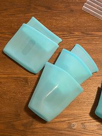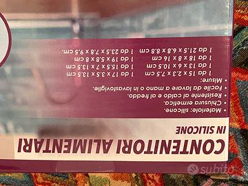 Set di 8 contenitori per alimenti in silicone morbido Misure nell’ultima foto Nuovo mai usato, aperto solo per la foto.