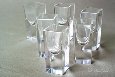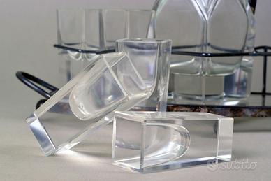 Set di decanter Art Deco in cristallo e argento anni '20/'40 con 6 bicchieri quadrati e vassoio
