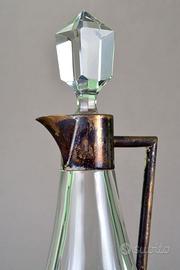 Bellissima caraffa in cristallo art déco originale del XX secolo, la parte superiore in metallo argentato, il fondo è di forma quadrata con una bella decorazione geometrica.