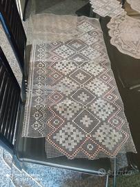 4 centrotavola prezzo 70 ciascuno e 5 centrini di filet 30 euro ciascuno