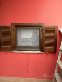 Vendo set di infissi in legno rovere scuro ,vetri doppi camera singola con persiane esterne. Gli infissi sono stati usati per circa 10 anni le finestre sono in ottimo stato ,le persiane in legno alcune necessitano di manutenzione. Misure : 2 finestre a tre ante h248 ,larghezza 180 cm; 2 finestre 2 ante h96 L 105 cm, 2 porte finestre 2 ante h246 L 118, 1 porta finestra 2 ante h218 L 120, 1 finestra 1 anta h 138 L 78; 1 finestra 1 anta h 70 L 80, 2 finestre solo basculante H 70 L 61 senza persiana esterna xche si trovano sulla scala. Le finestre non hanno basculante a parte quelle piccole.Prezzo esposto indicativo si valuta anche la vendita di singolefinestre. No spedizione.le 2 da 96x105 vendute. Le misure sono interne delle finestre non del telaio .