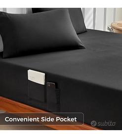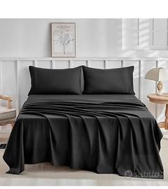 Set di Lenzuola Matrimoniali 4 Pezzi, Lenzuolo con Angoli 180x200 cm, Lenzuolo Piano 270x290 cm, 2 Federa 50x80 cm, Poliestere Morbido e Resistente, Nero