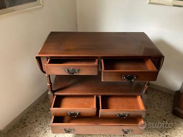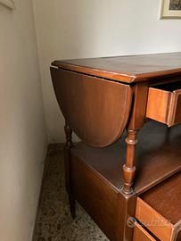 Tavolino a ruote misure: altezza 85 cm; profondità 45 cm; lunghezza 90 cm (+25 per lato con antine aperte)