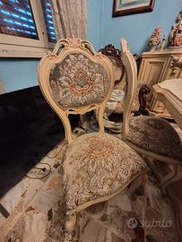 Set di mobili in stile barocco veneziano composto da: vetrina, credenza e specchio, tavolo e 4 sedie.