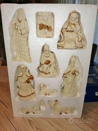 Set di 9 statuine in bisquit della marca Galileo, anni 2000 bianche e qualche dettaglio dorato. Chi è bravo le può anche dipingere a suo gusto. L'altezza varia a secondo della statuina, all'incirca 8 cm. Scatola mai aperta, in perfetta condizione.