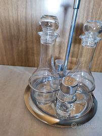 Set di olio e aceto con sale e pepe ,in vetro e acciaio inox 18/10 ,made in Italy. Diametro 18 cm. La particolarità dell'articolo è il pomello con inserto in rilievo in acciaio satinato.L'articolo non è mai stato utilizzato ma è stato solo lavato, quindi è nuovo senza cartellino ⚠️ ma è sprovvisto di confezione originale.