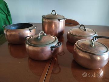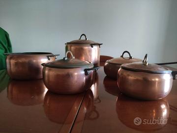 Set di pentole in rame con coperchio