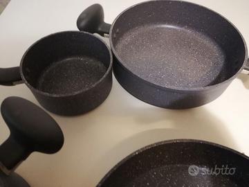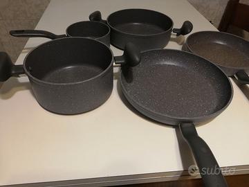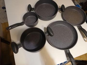 Vendo set di pentole Lagostina composto da due padelle di diametro 24 e 28 cm, una casseruola di diametro 20 cm e un'altra di diametro 24 cm, un pentolino di diametro 14 cm. Tutto in perfette condizioni come nuovo.
