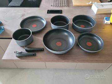 il set è in condizioni usate: i bordi sono leggermente usurati ma il fondo delle pentole é in buone condizioni