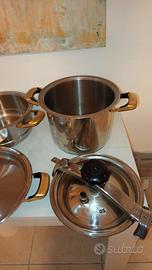 Vendo set di pentole composto da 5 pezzi, pentola grande che può diventare pentola a pressione, cottura a vapore, pentola ovale e pentola bassa, ottima fattura, acciaio inox, molto robuste.
