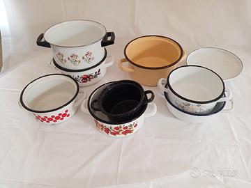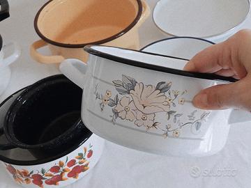 Set di Pentole smaltate bianche decorate
