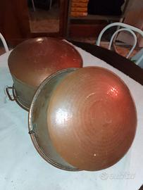 Si tratta di oggetti autentici e tradizionali, realizzati in rame spesso, con manici in metallo ribattuti (non saldati), tipici della produzione artigianale di un tempo.
