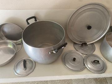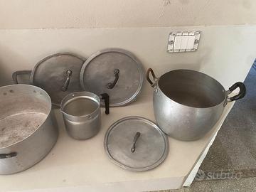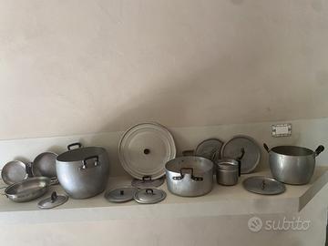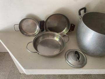 set di pentole vintage in alluminio e acciaio