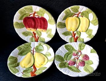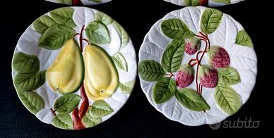 Set di piatti vintage in ceramica italiana con decoro volumetrico di frutta, fatto a mano, Italia
