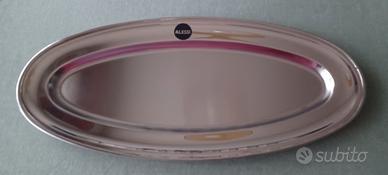 In acciaio inossidabile lucido. Il set si compone di un vassoio ovale (50 x 35 cm) e un piatto da pesce (50 x 23cm).