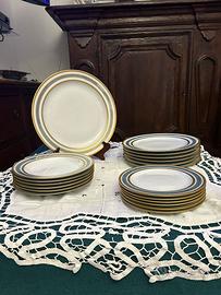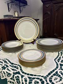 Servizio da 19 pezzi Eschenbach Profilo oro e blu 6 piatti piani 6 piatti fondi 6 piattini 1 piatto da portata ovale Come nuovo