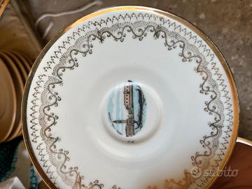 Set di piattini da colazione o dessert con sfondo dei monumenti più importanti di Venezia.