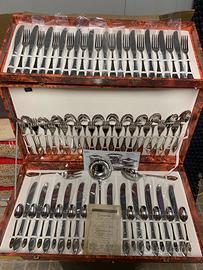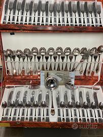 Vendo causa trasferimento cofanetto servizio posate Cottinghen da 75 pz. composto da : n’ 12 cucchiaini caffe e dolce n’ 12 cucchiai n’ 24 coltelli n’ 24 forchette n’ 1 mestolo n’ 1. forchettina da dolce n’ 1. cucchiaio Acciaio 18/10 e Oro zecchino 24 Karati Veramente bello,!!!!