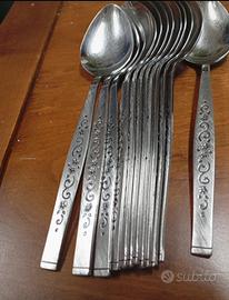 Servizio di posate Oneida Limited Genoa Stainless USA. In perfette condizioni. 14 cucchiaini caffè 12 cucchiai dessert 12 forchettine dessert 12 cucchiai 12 forchette 12 coltelli Caratteristica stilizzazione fiori. Per ulteriori informazioni contattatemi.