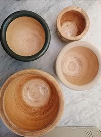 Vendo set di quattro cachepot in ceramica con decorazioni smaltate. Molto buone le condizioni, come da foto.