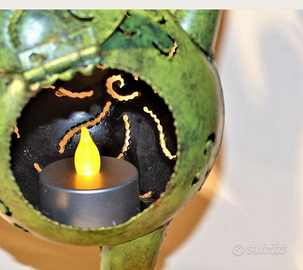Rane dipinte a mano in acciaio, la rana che si illumina è di circa 40 cm con apertura posteriore con spazio a candela, LED o lampadina. Ideale per