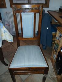set di n6 sedie restaurate e ritapezzate + divanetto come sopra descritto, datazione... presumibilmente prima metà del 1900.