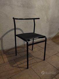 Un riconoscibile set di sei sedie da pranzo "Café" disegnate da Philippe Starck e prodotte da Baleri in Italia intorno al 1980. Un altro design iconico di Starck, realizzato in metallo tubolare nero di alta qualità con una bella finitura arrotondata. I sedili sono in gomma, lo schienale è arrotondato e offre un buon sostegno. Le sedie sono impilabili. Il set è in ottime condizioni vintage, con lievi segni di usura dovuti all'età e all'uso, e conserva una bella patina.