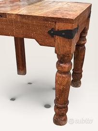 Splendido set di 6 sedie in stile rustico/coloniale, realizzate in legno massello con una calda finitura naturale che ne esalta le venature originali. Un pezzo d'arredamento robusto e di grande carattere, ideale per una sala da pranzo, una taverna o un ambiente in stile country chic.