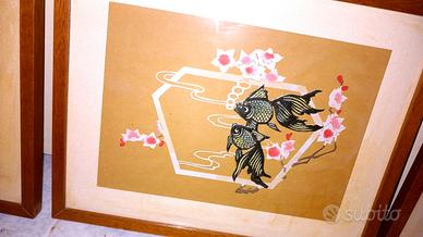 Set di sei stampe artistiche incorniciate in stile tradizionale giapponese, vintage, probabilmente anni 60 30€