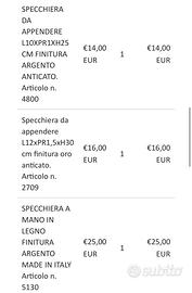 Vendo 4 specchi , misure con foto e prezzo originale. Dietro hanno tutti un gancio per poterli appendere. Leggere bene le misure . Non spedisco.