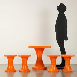 Set di cinque tavolini da appoggio di diverse misure e altezze in materiale