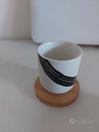Set di tazze in ceramica con piattino in legno